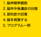 ①脳を刺激する体操療法 ②脳を刺激する遠赤外線温熱療法 ③脳を刺激するゲームや回想療法
